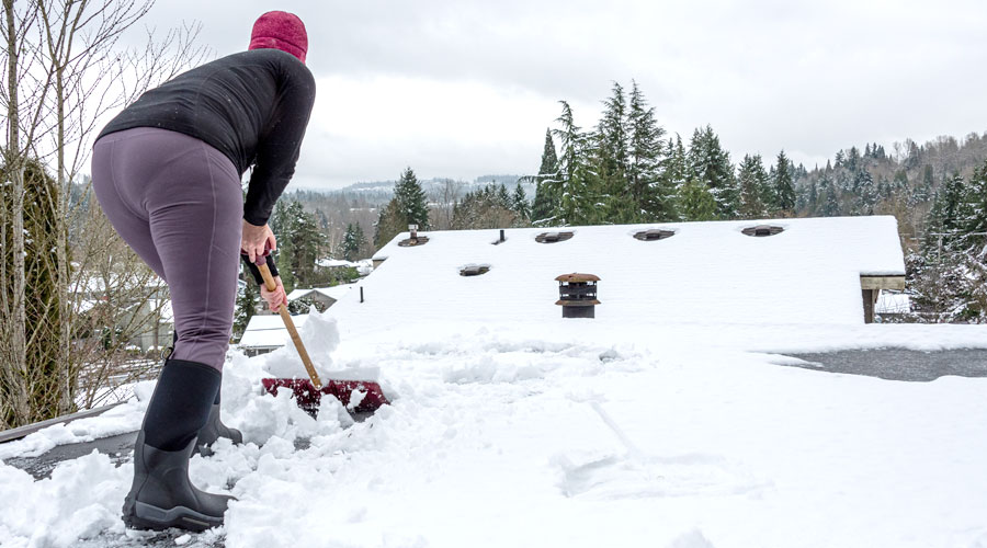 - Clean debris. Ensure the roof is clear of fallen branches, leaves and garbage. Debris can prevent water from draining, which allows snow to build up and cause water damage or add weight to the structure.